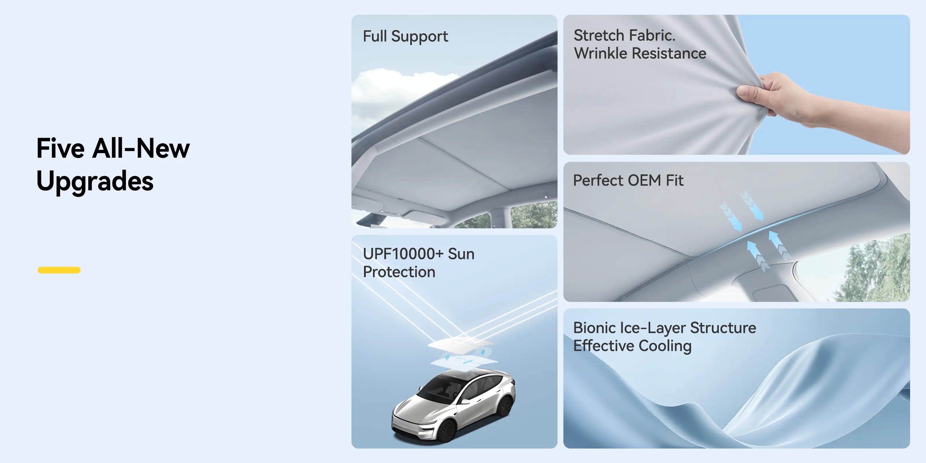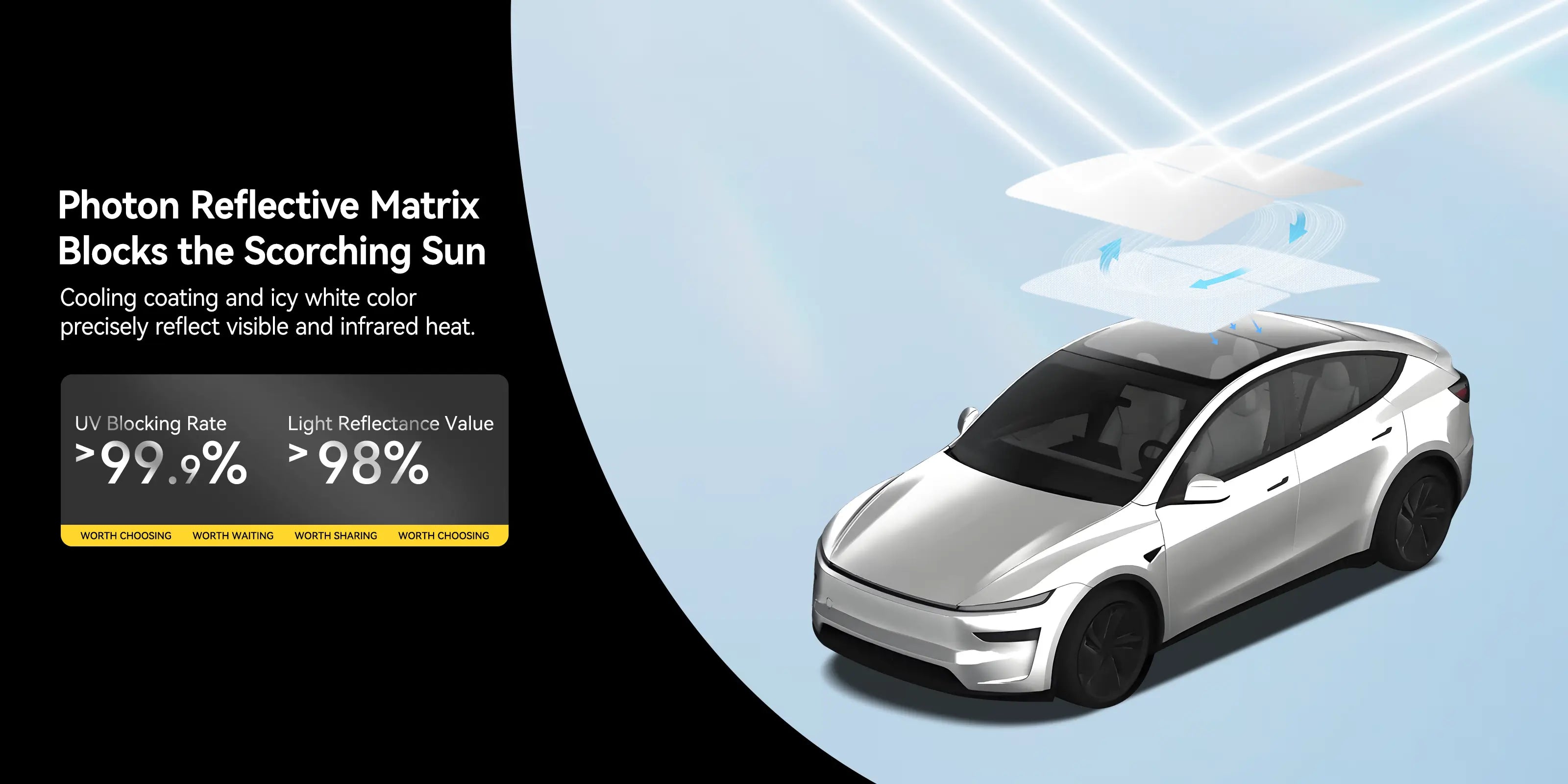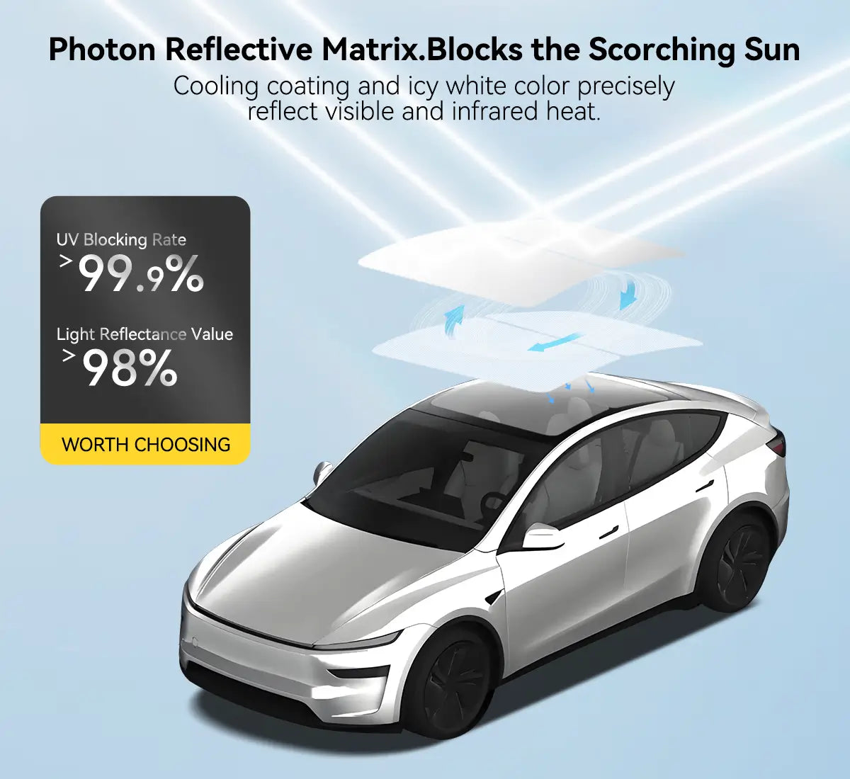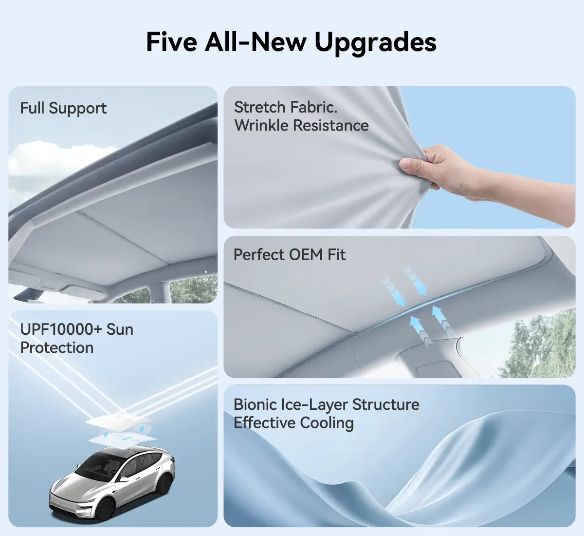 Keep your Tesla Model Y Juniper cool, protected, and comfortable with this premium foldable sunshade—engineered to perfectly match the original interior while delivering unmatched UV and heat insulation. Using aerospace-grade cooling materials and a fully upgraded structural design, it provides exceptional sun protection without damaging your vehicle.