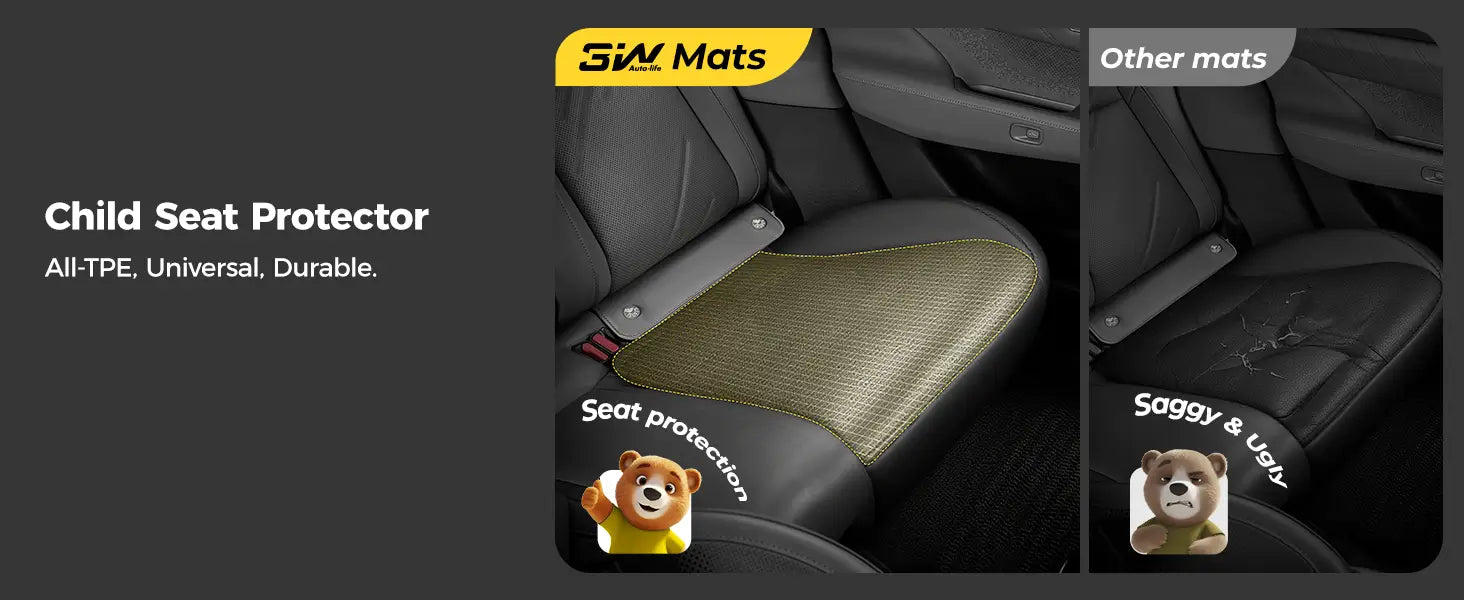 Protect your car seats and keep your little one comfortable with the 3W Child Seat Protection Mat. Designed with the same precision and durability as our 3W car floor mats, it shields your seats from spills, crumbs, and pressure marks left by child seats.