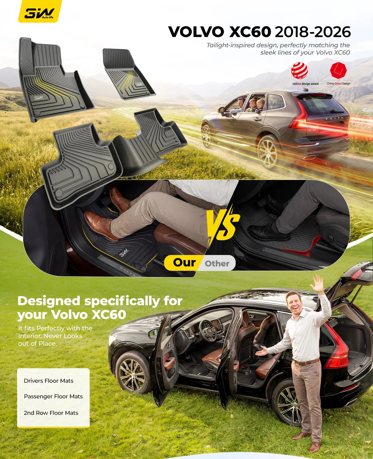 3W All Weather Car Mats For Volvo XC60 2018-2026 LHD